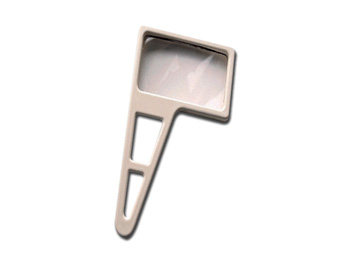 Povečevalno steklo, ki poveča črke in predmete za dvakrat. Lahko ga uporabljamo tudi, če nosimo očala in le-ta niso dovolj za droben tisk.